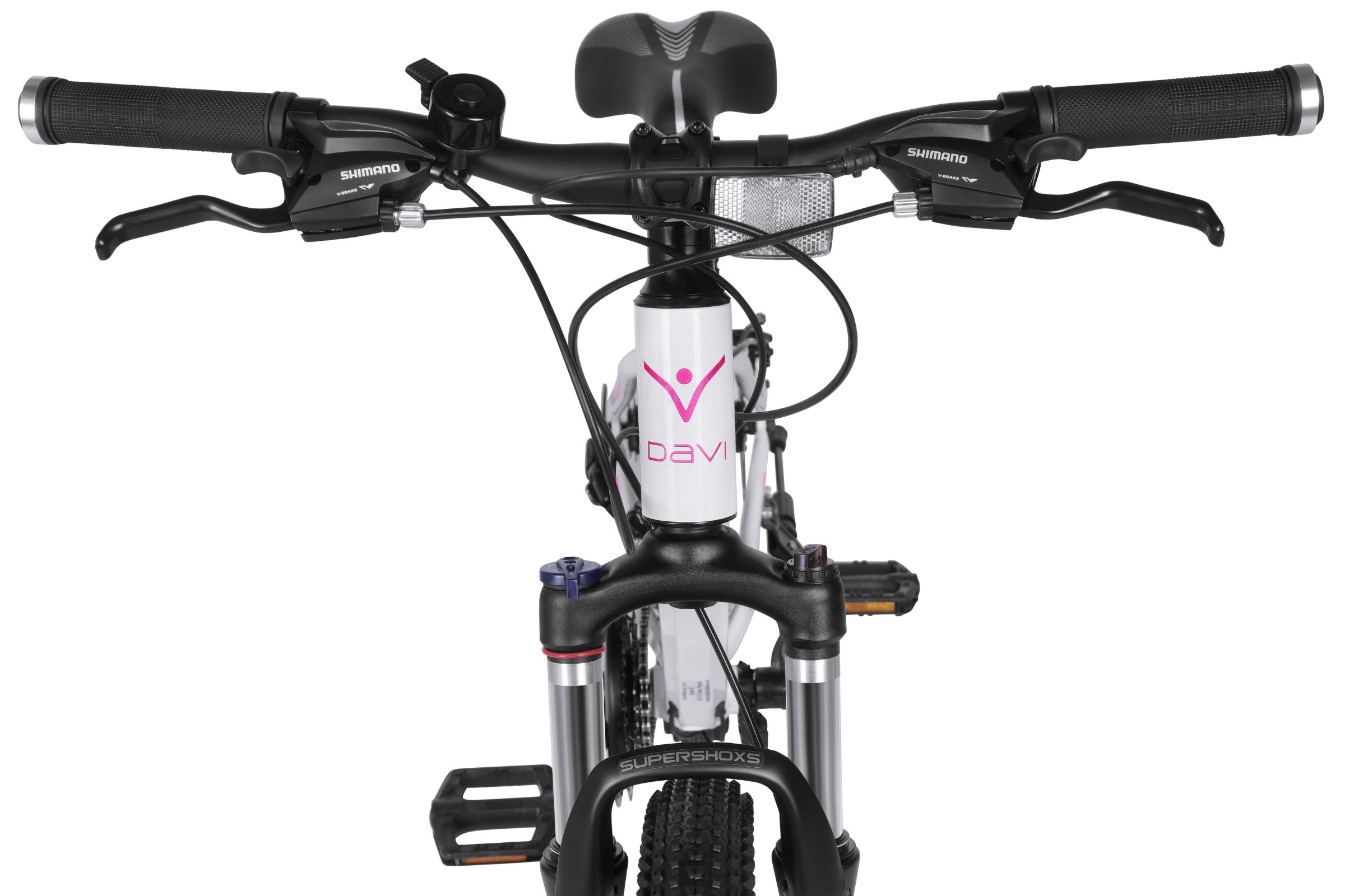Drengecykel Davi Bella Aluminium, 24″, 130-160 cm, 21 gear, Hvid/Lyserød