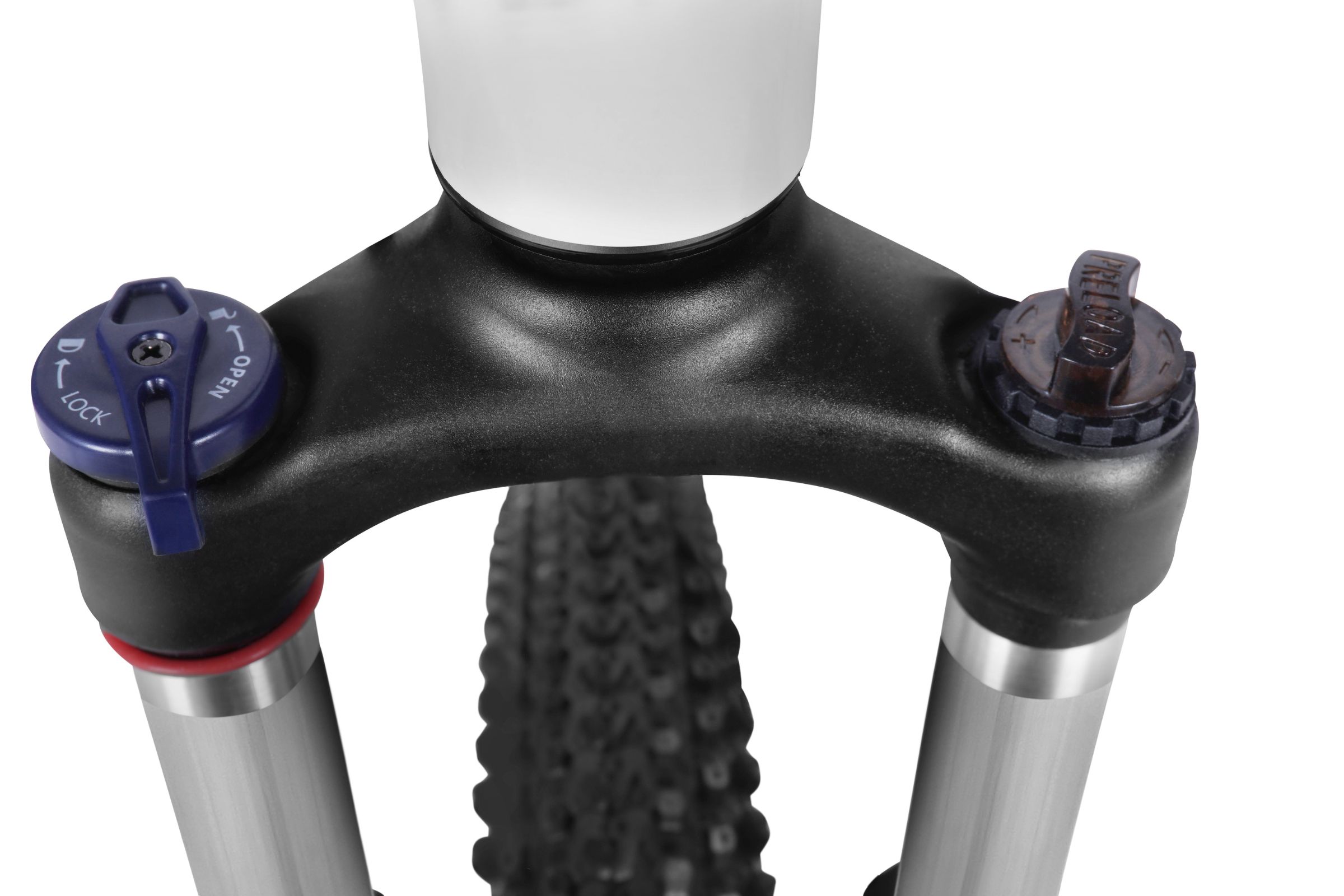 Cykelstøtte med sort håndtag og beslag.