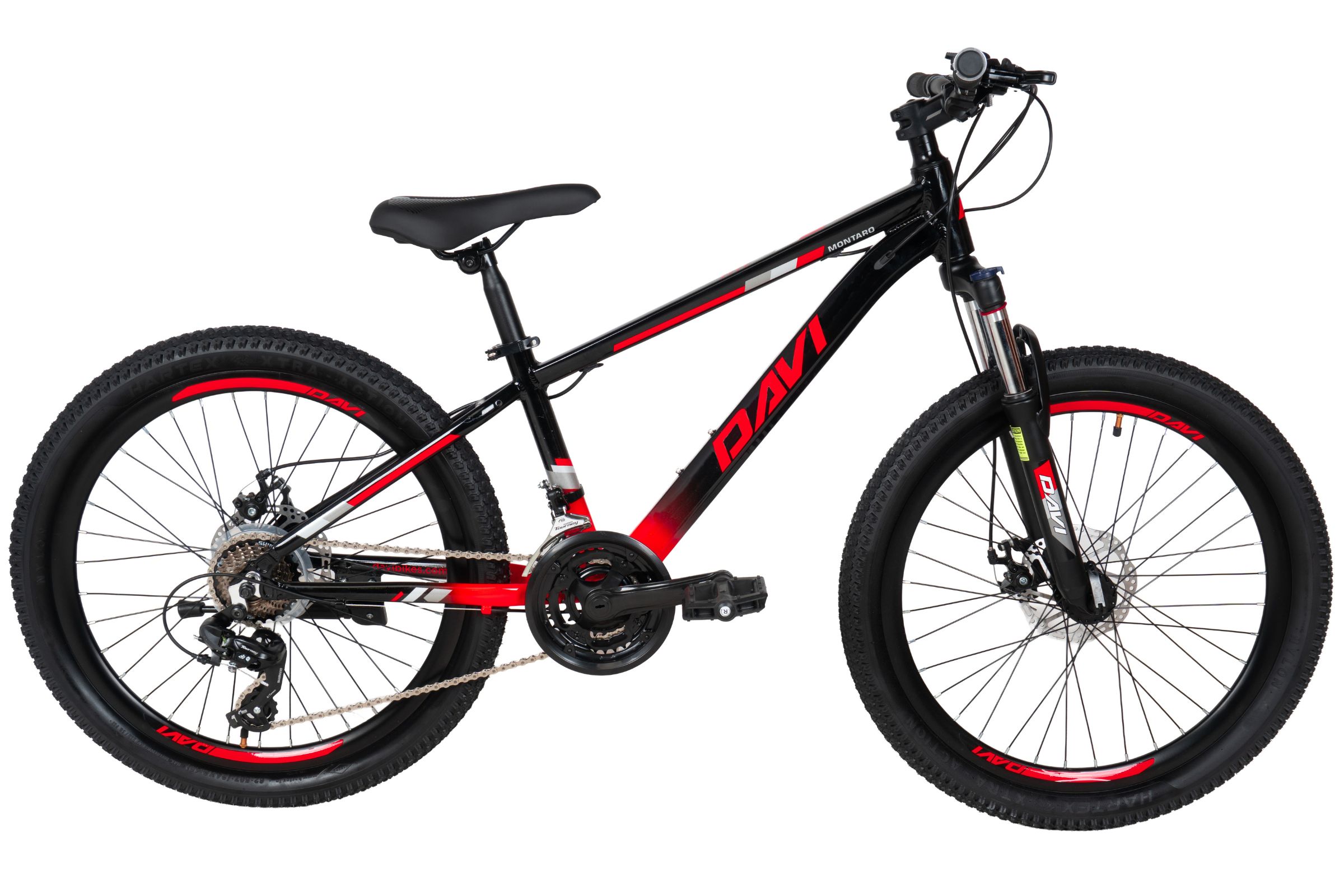 Drengecykel Davi Montaro Aluminium, 24″, 130-160 cm, 21 gear, Sort/Rød