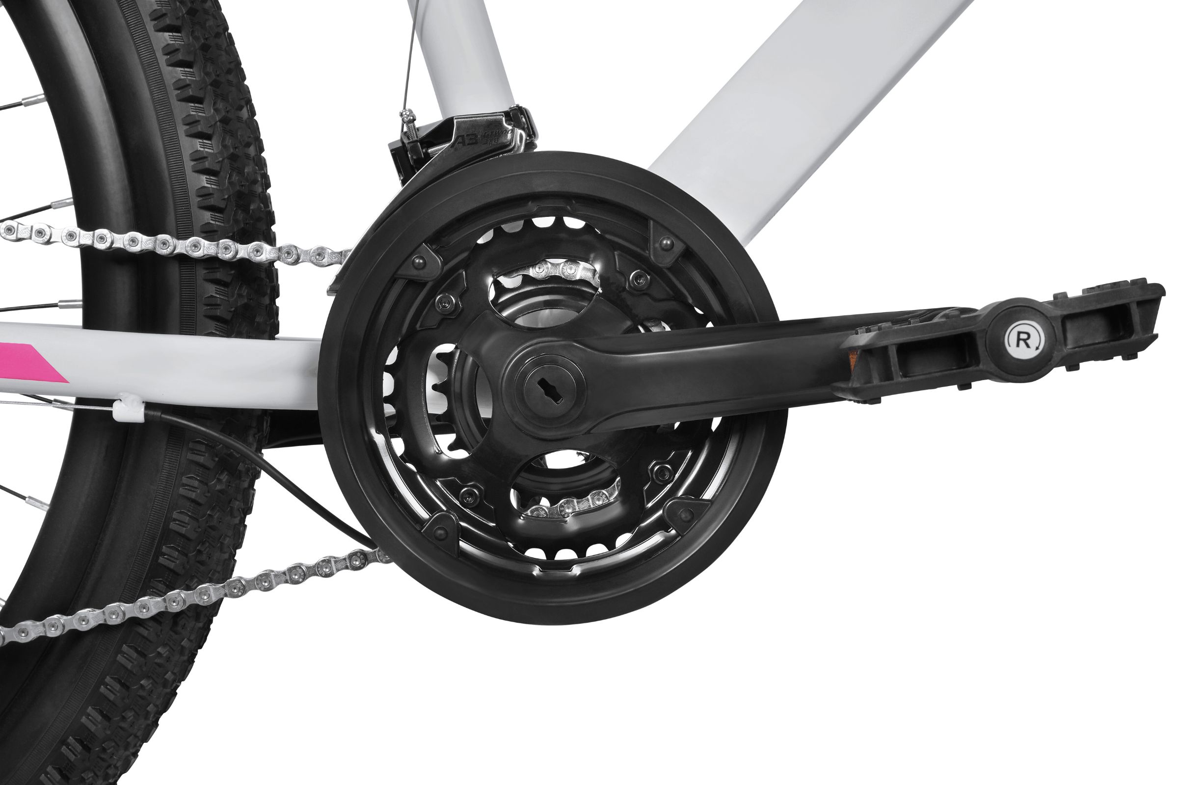 Affjedret forgaffel, vandring 38 mm, preload-justering + lock-out dæmper effektivt vibrationer og ujævnheder, der opstår under kørsel på ujævnt terræn. Øger komforten på bump, kantsten og ubefæstede ruter. Takket være dette fungerer cyklen bedre under daglige ture og terræneudflugter. Låsefunktionen (lock-out) gør det muligt at stive forgaflen af på jævne veje, hvilket eliminerer energitab ved tråd.